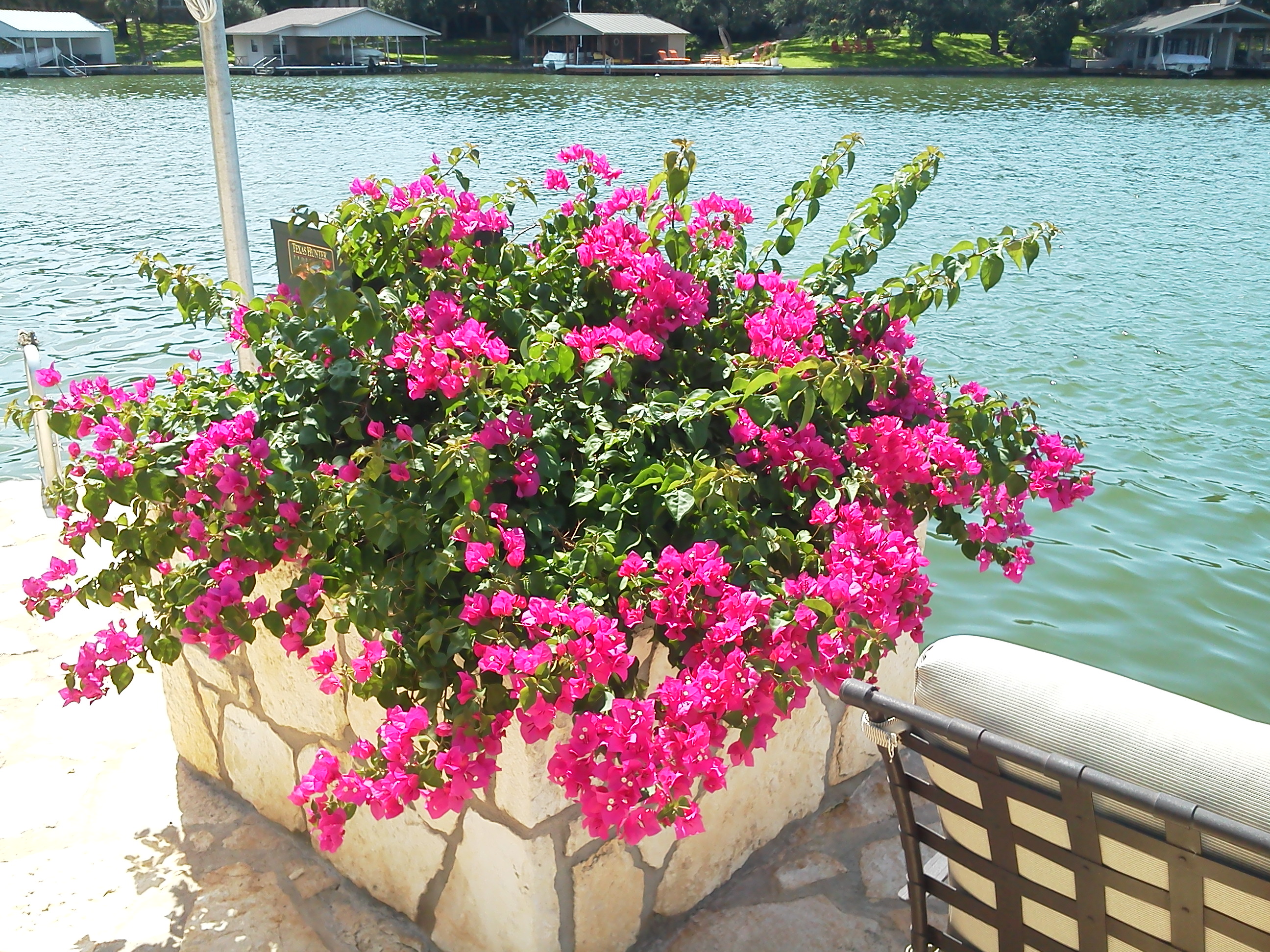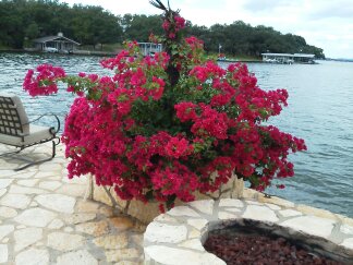 Day Dock Windmill Palm and Bougainvillea with LavaRock Firepit