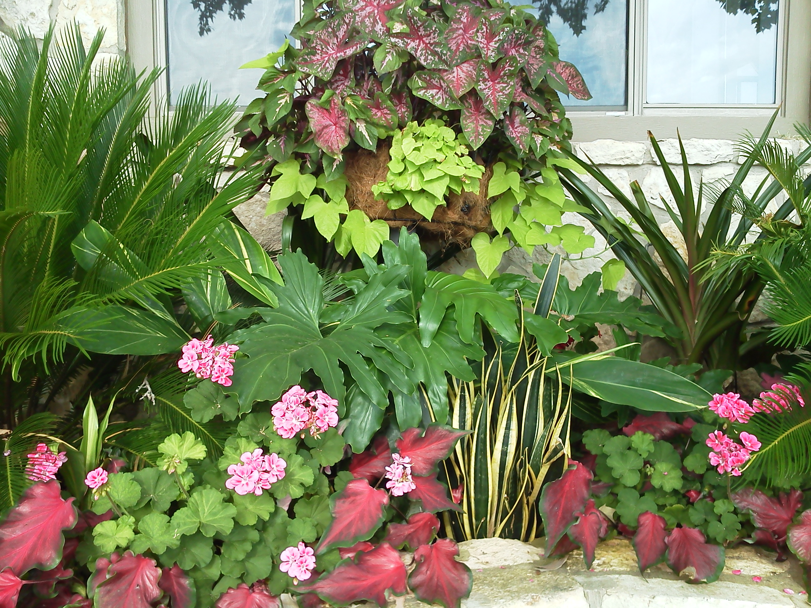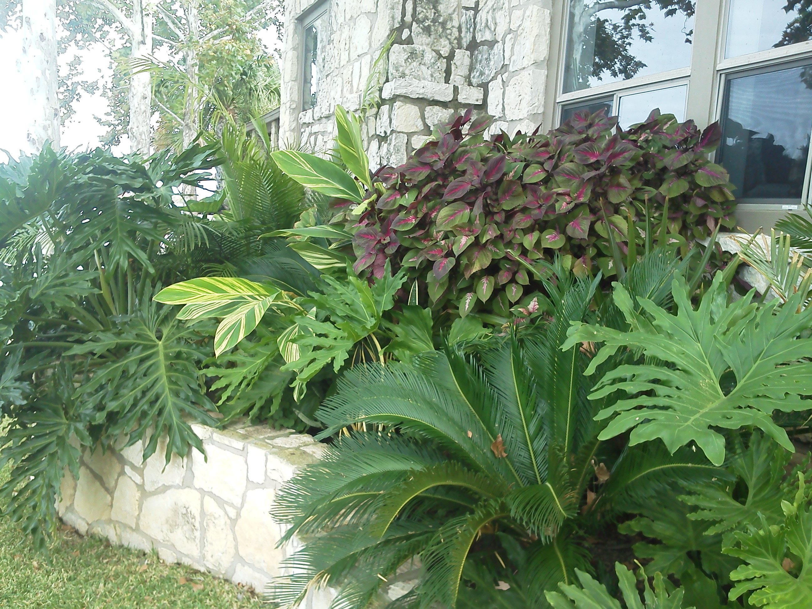 Coleus, Ginger, Split Leaf Philodendron, and Sago Palm